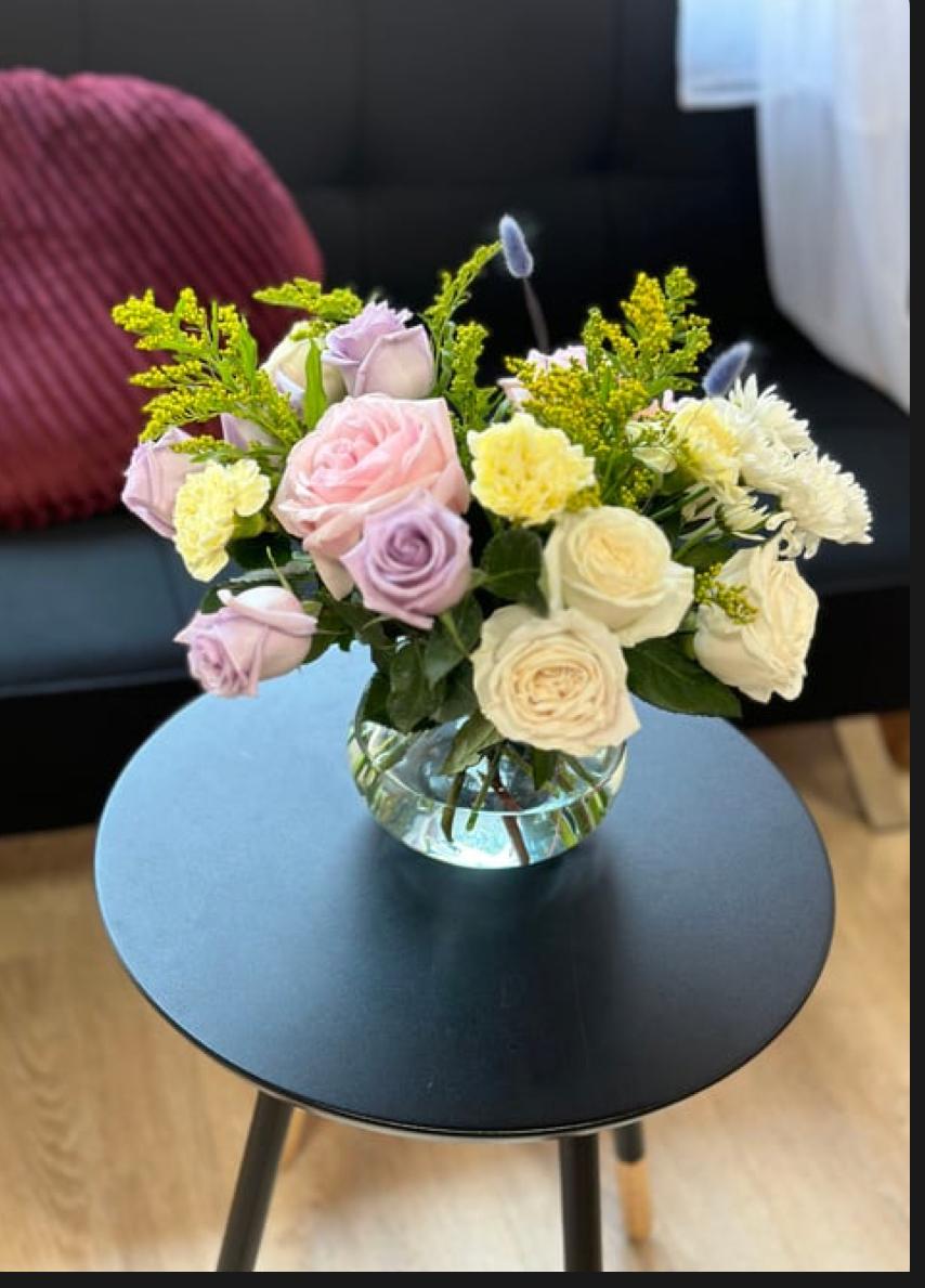 “Whispering Elegance” is a breathtaking bouquet that combines the classic beauty of roses and fillers, and with vase. This exquisite arrangement is a perfect blend of romance and sophistication, featuring a harmonious mix of colors and textures that create a truly captivating display.
